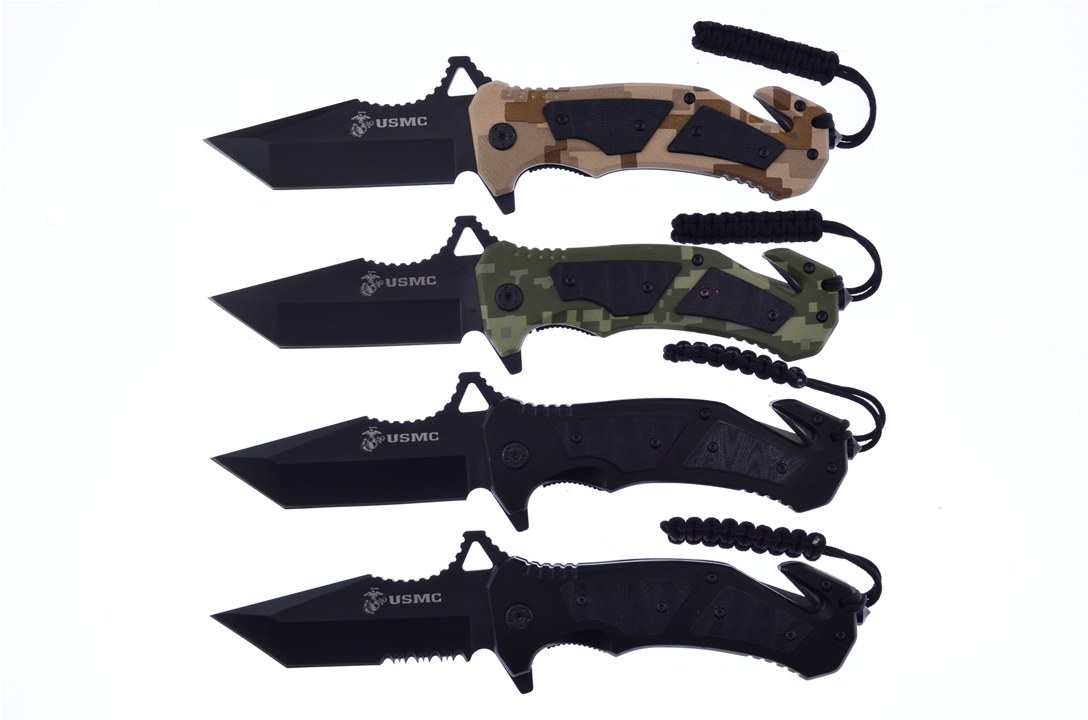 This Marine Shadow Ops Collection has the heavy duty Tacticals you need! Each measures 5 1/4" closed and has assisted opening, a seatbelt cutter, a glass breaker, and a lanyard. Get your set while you still can!