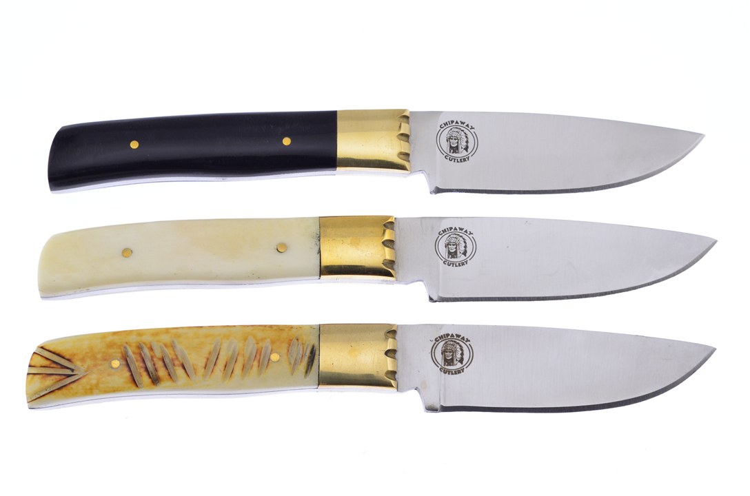Introducing the Little Fox Trio by Chipaway Cutlery. This set includes three 7 1/4" overall fixed blades in Buffalo Horn, White Smooth Bone, and Torch Bone handle materials. Each comes with a leather sheath for easy storage or carry. Get your set before they sell out!