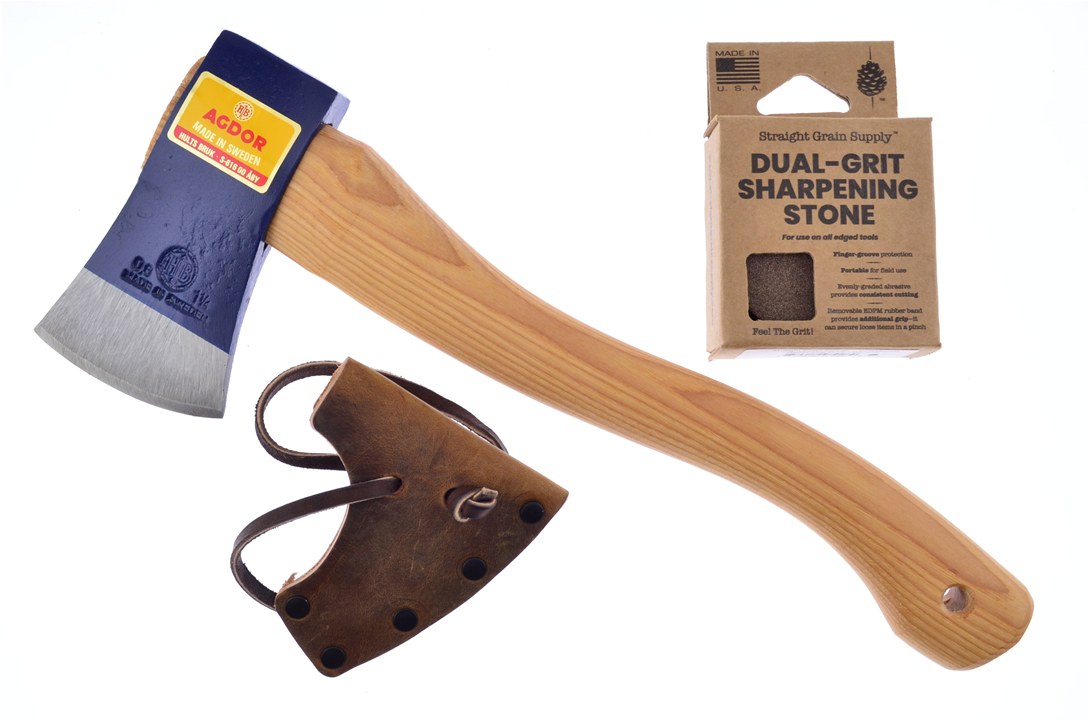 Here is a deal you don't want to miss! This Agdor Hatchet measures 15" overall and is as sturdy as they come! It has a lanyard hole and comes with a leather sheath and sharpening stone. Get your set while you still can!