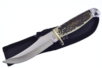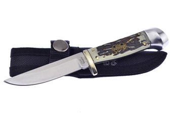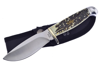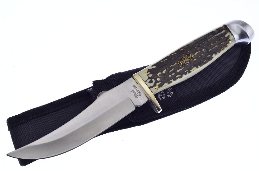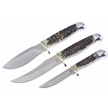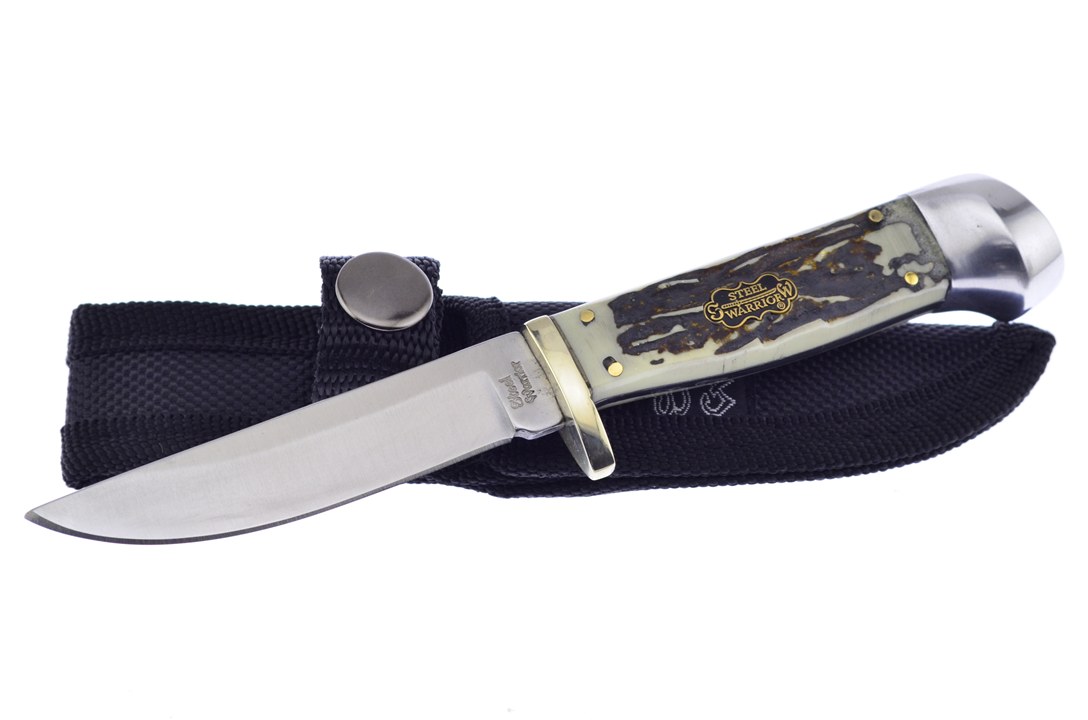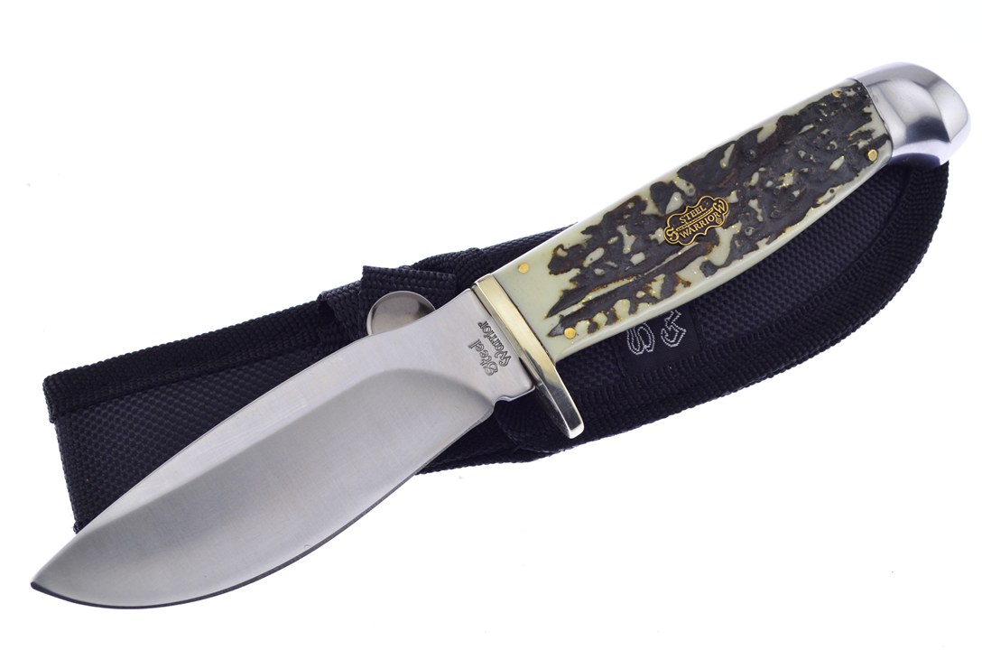 Here is a set by Steel Warrior that you don't want to miss! Get a fixed blade assortment in Stag Bone Resin material that includes 6 1/2", 8 1/2", and 9" overall pieces. Each has full tang construction and comes with a sheath for easy storage or carry. Get your set while you still can!