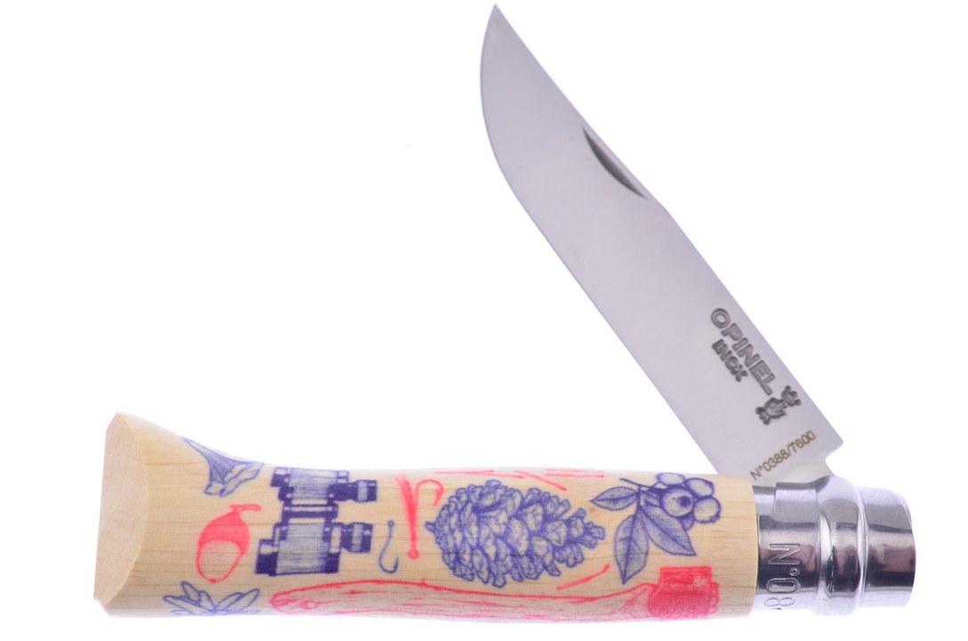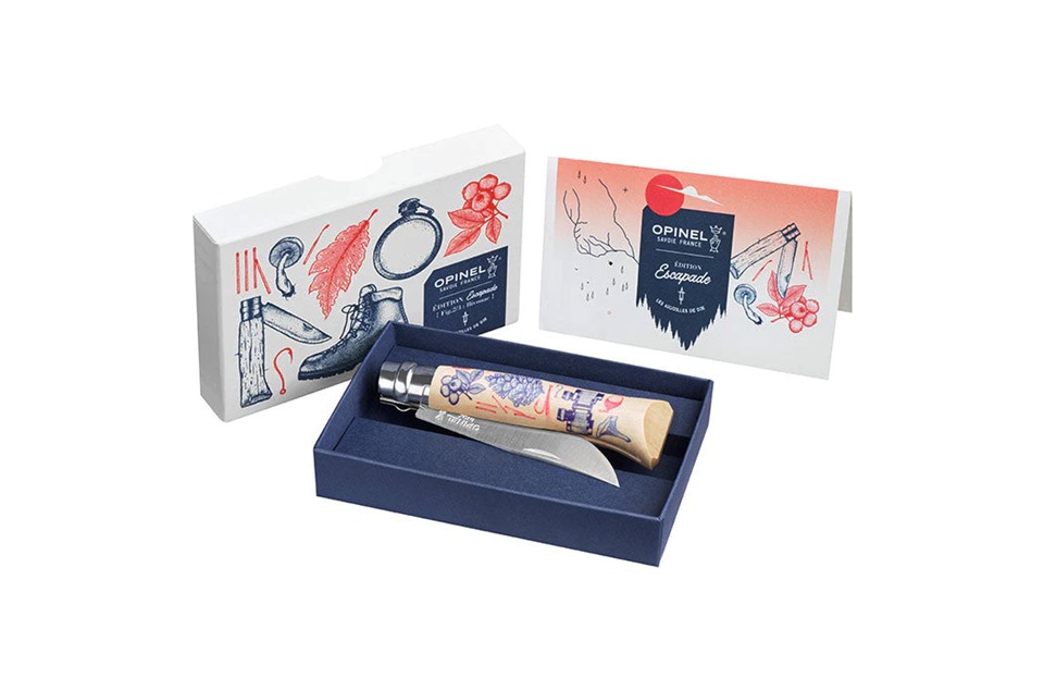 Only 800 pieces/ea available in the United States. For this round of Opinel?s limited edition artist series, Opinel has teamed up with Jérémy Groshens -Les Aiguilles de Dje, a 29-year-old French tattoo artist. Traveling between the mountains of his native Alsace and the Basque coast, Jérémy takes his art on the road, working from a 1972 Digue camper-turned-mobile workshop and tattoo parlor called the Outdoor Tattoo Truck.