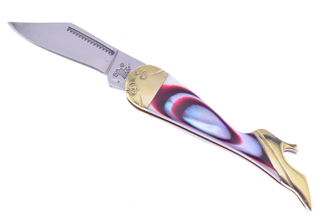 Steel Warrior brings you this 3 1/4" Red Swirl Mother of Pearl Leg Knife. No one can resist, so get yours while you can!