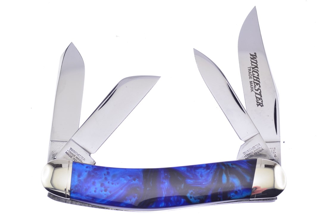 The 3 3/4" Blue Velvet Custom 4 Blade Stockman by Winchester is a long-time best-seller! This is going to be flying off the shelves, so don't miss your chance to get one!