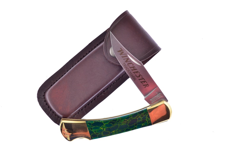 The 5" Golden Jade Stone Lockback by Winchester is a long-time best-seller! With Leather Pouch and Stainless Steel Blade, no one can resist, so get yours while you can!