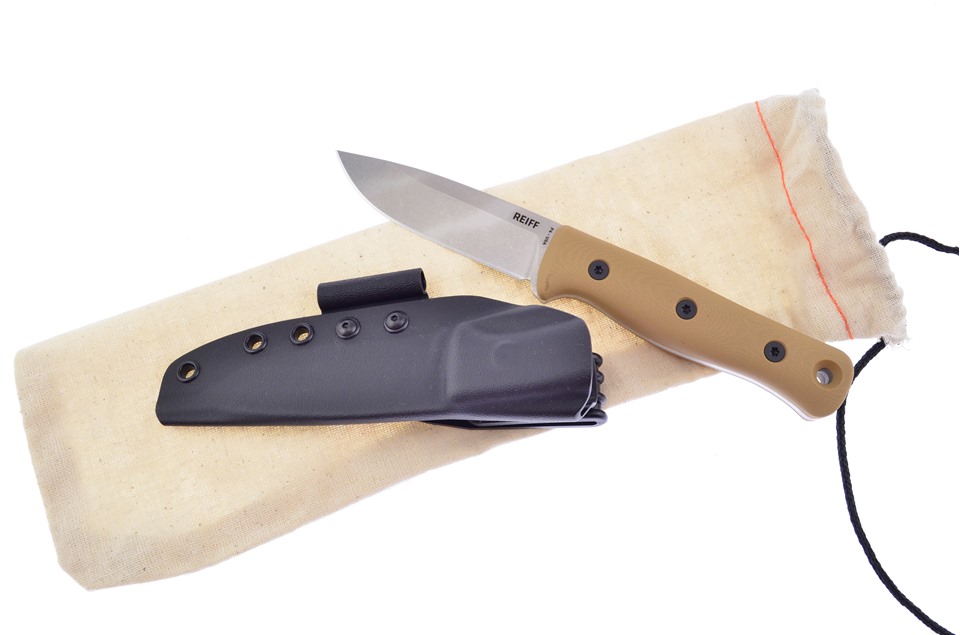 The F4 is our general purpose bushcraft style survival knife. Its 4" blade is robust enough to withstand the toughest survival situations, yet refined enough to breeze through any bushcraft task. Constructed from 5/32" thick CPM®3V high-alloy steel, these knives are exceptionally durable. The spine will rain sparks from a ferro rod or scrape cedar bark for tinder. The sturdy full tang is skeletonized to reduce the overall weight of the knife, making the F4 an ideal carry companion in the field or around town. You'll find the ergonomic 5" handle has no hotspots, providing a seamless interface between your hand and the tool. Whether you're crafting a bow drill or field dressing an elk, the F4 will get the job done right.