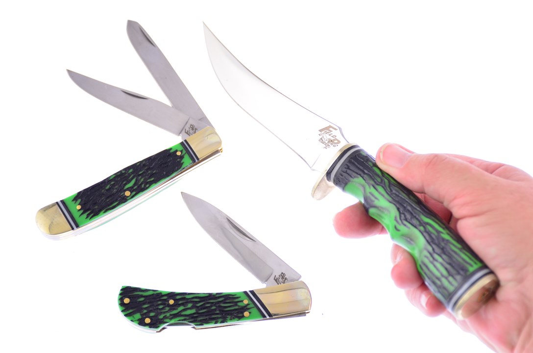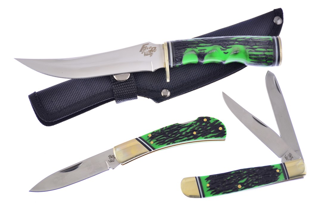 We think you're going to like this Green Bone Bowie/Pocket Knife Combo! This is going to be flying off the shelves, so don't miss your chance to get one!