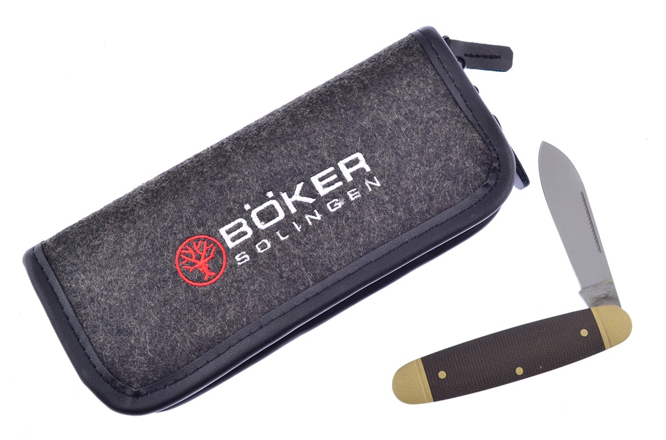 The Boker Brown Canvas Micarta Series feature ice-hardened N690 stainless steel blades with match strike pulls and a tumbled finish. The handles are pressed brown canvas micarta with brass pins, bolsters, and liners. This Boker Brown Canvas Micarta Single Blade Jack features a 2.5" spear point blade. It's 3.7" closed and weighs 2.29oz. Handmade in Solingen, Germany. Comes with an embroidered zip case.