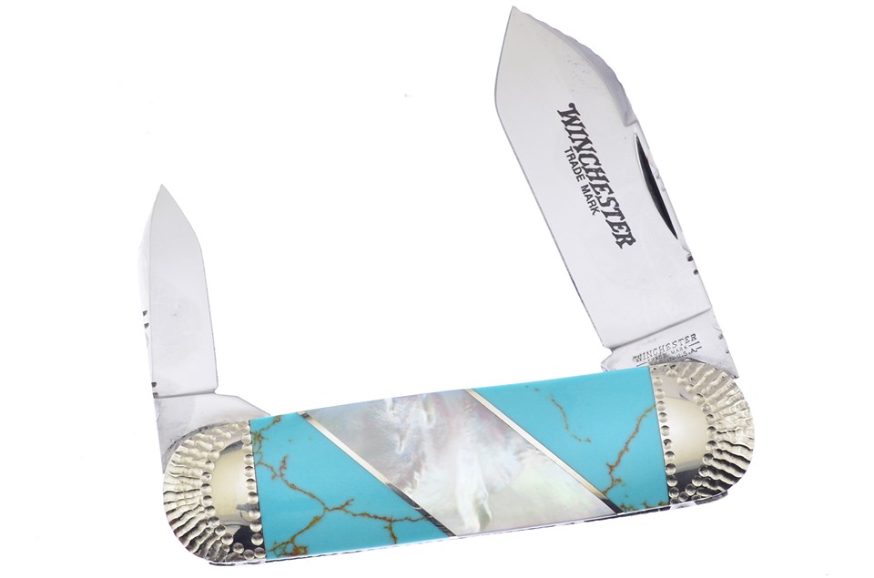 You don't want to miss this Winchester Sunfish with beautiful Turquoise and Pearl Inlays. Items like this don't stay in stock long so get it while you can.