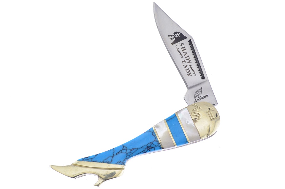 We think you're going to like this 3 1/4" Mother of Pearl & Turquoise Combination Leg Knife! You need to pop this in your cart now while supplies last!