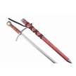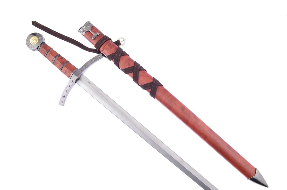 Crusader Knights Of Templar Short Sword is a great choice for any collecto . The five crosses came to become the symbol of the Kingdom of Jerusalem. The four smaller crosses represent the four books of the Gospel. The five crosses together represent the five wounds inflicted on Christ during the Passion. The blade of the sword has been constructed from 440 Stainless Steel with a false edge and sharp point. A ridge runs down the center of the blade. The scabbard is ABS material with black ABS finish. The drag of the sword is polished steel. A leather cord has been wrapped around the scabbard. The scabbard throat is polished steel. The guard is 440 Stainless steel in an Oakshott type XVII. The handle is black ABS with five steel rings. The pommel of the sword is a disc design with the Crusader Cross in gold color. Overall Length with Scabbard: 23 Inch