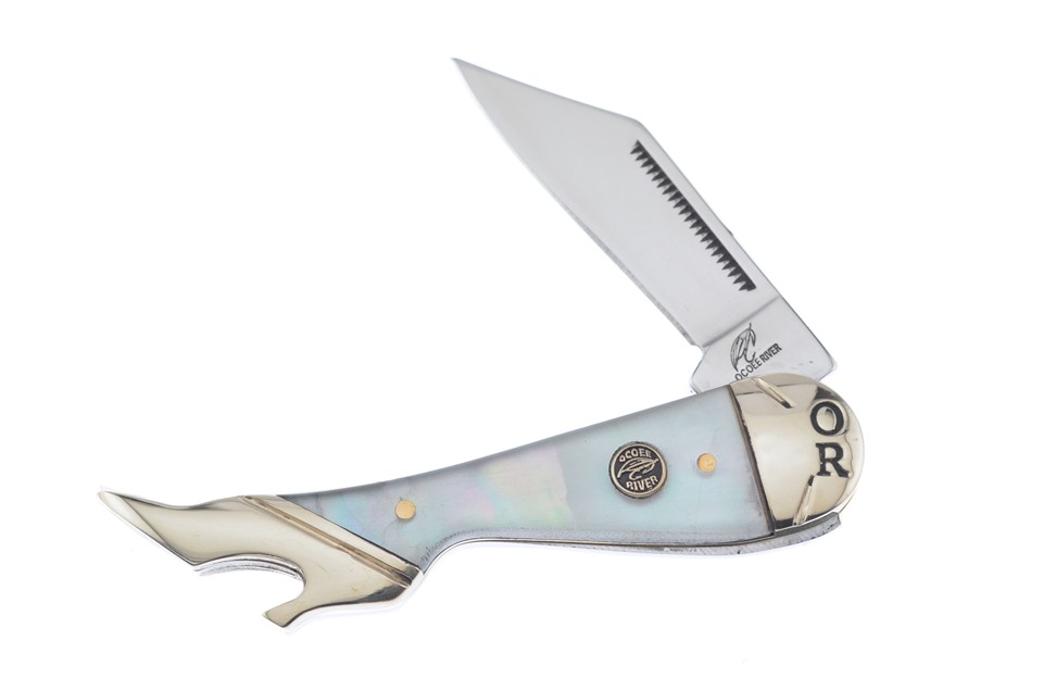 This 3 1/4" Salt Water Mother of Pearl Leg Knife by Ocoee River Cutlery is a great choice for any collector. This is going to be flying off the shelves, so don't miss your chance to get one!