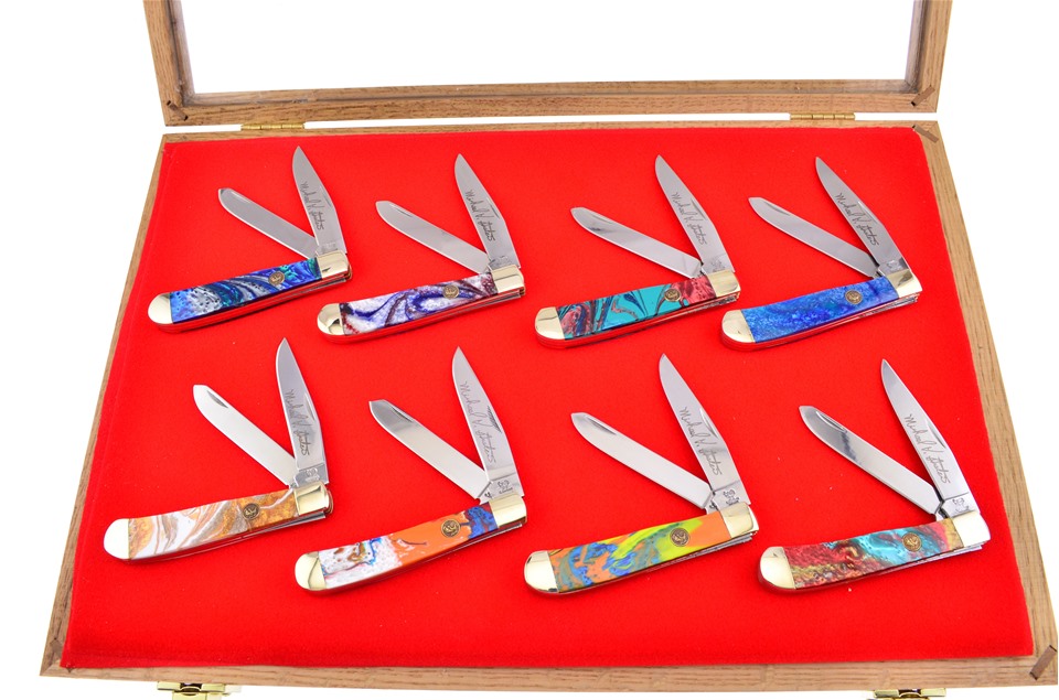 Here's a set of knives no collector will want to miss. On the handles you will get Aqua Beach, Avalanche, Coral Reef, Freedom Spirit, Fall Foliage, Feather Macaw, Mandarin Duck and Winter Christmas. Sets like these go fast, so get yours while you can!