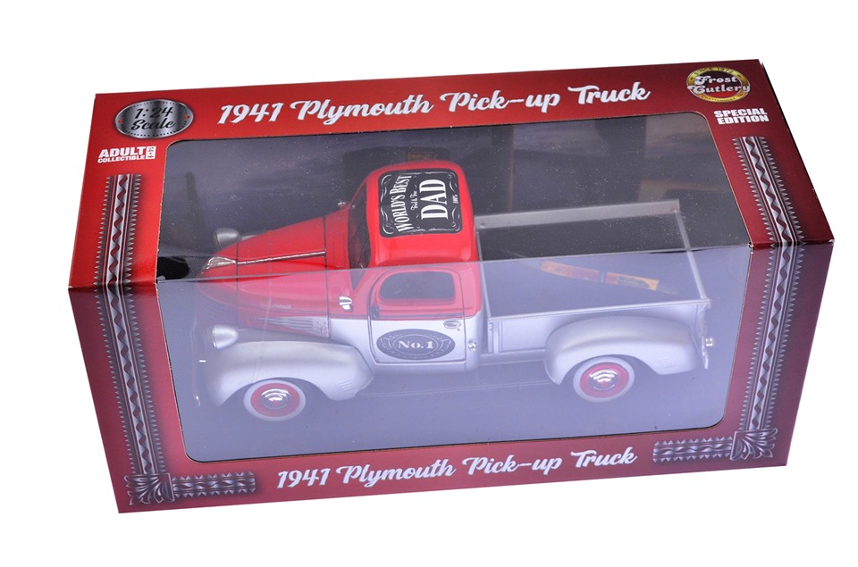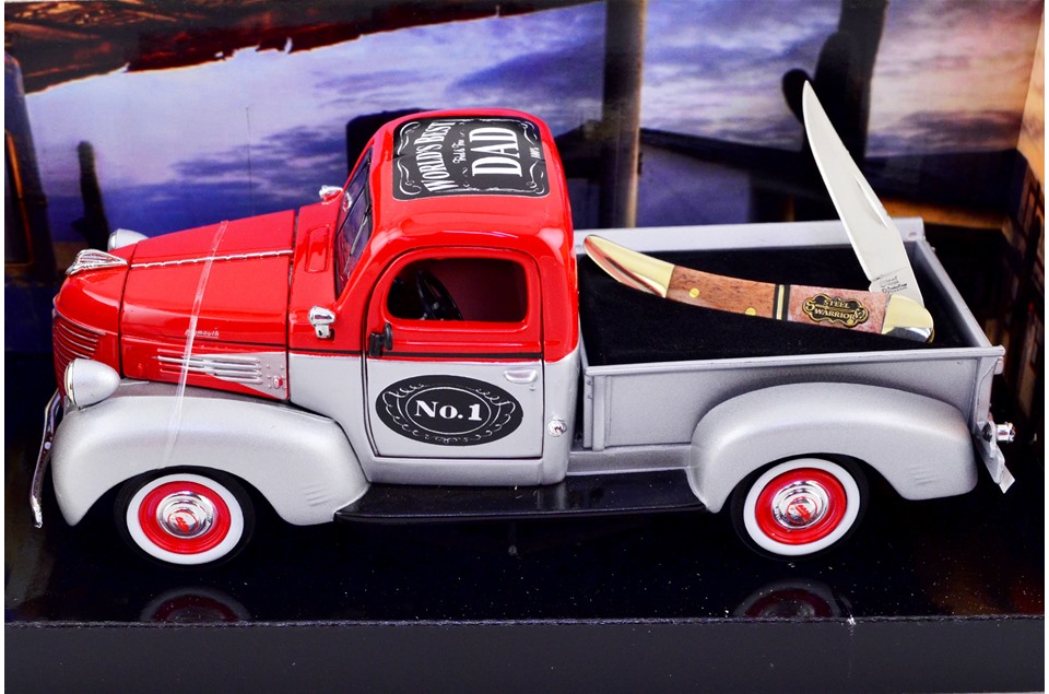 Elevate your Father's Day gifting game with our World's Best Dad die-cast 1941 Plymouth Pick-up truck, a tribute as iconic as the title itself. Paired with the exquisite Steel Warrior Little Toothpick knife, this collectible is an unequivocal declaration of your dad's exceptional status. As dependable as "Old No. 1," this set embodies the enduring bond between fathers and children. Whether it's displayed proudly on his desk or cherished as a symbol of love and appreciation, this unique duo encapsulates the incomparable role your dad plays in your life. Make this Father's Day truly special by gifting the World's Best Dad a collectible that is as extraordinary as he is.