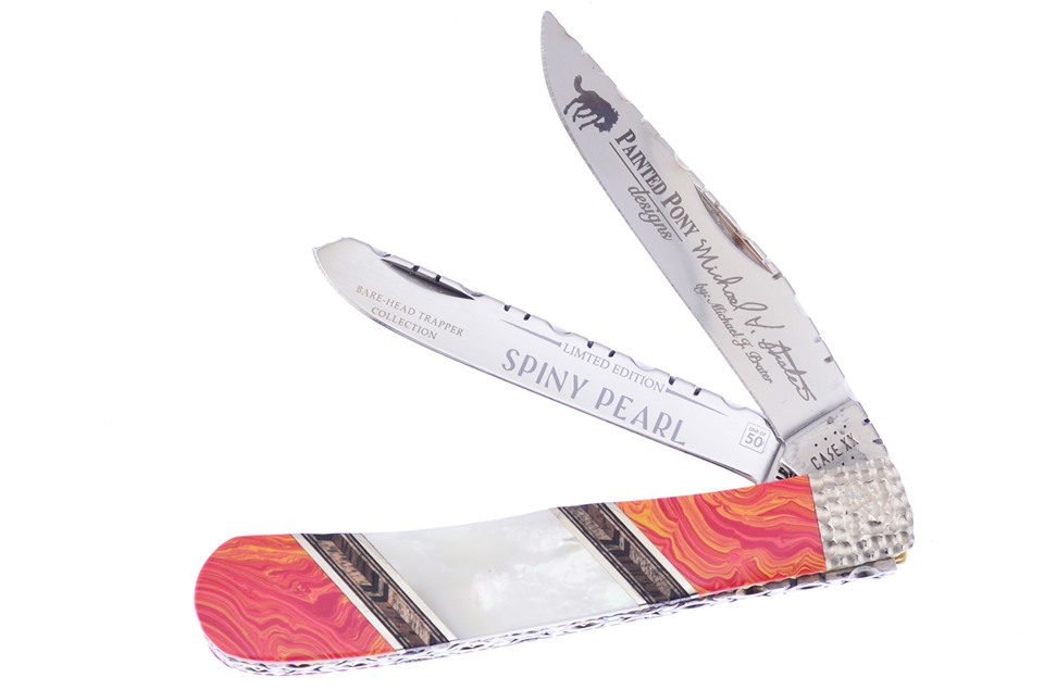 You dont want to miss this beautiful Case Painted Pony with Spiney Oyster and Pearl Handles with Chevron Wood Inlays. Put this in your cart today before it sales out.