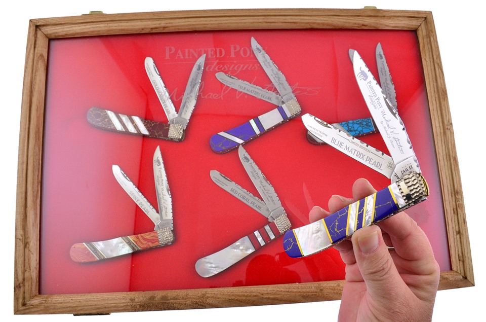 This set is a great addition to any collection. Included in this set is one of the N/As, one of the Display Boxs with Display Box, one of the 4 1/8" Spiney Custom Trappers, one of the 4 1/8" Pearl Trappers, one of the 4 1/8" Blue Matrix Stone Trappers, featuring Decorative Bolsters, one of the 4 1/8" Purple Matrix Stone Trappers, and so much more! Sets like these go fast, so get yours while you can!