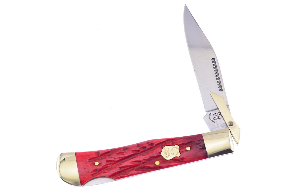 Buck Creek has really knocked it out of the park with this 4 3/8" Red Picked Bone Swing Guard! You need to pop this in your cart now while supplies last!