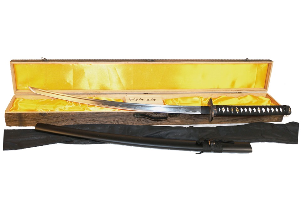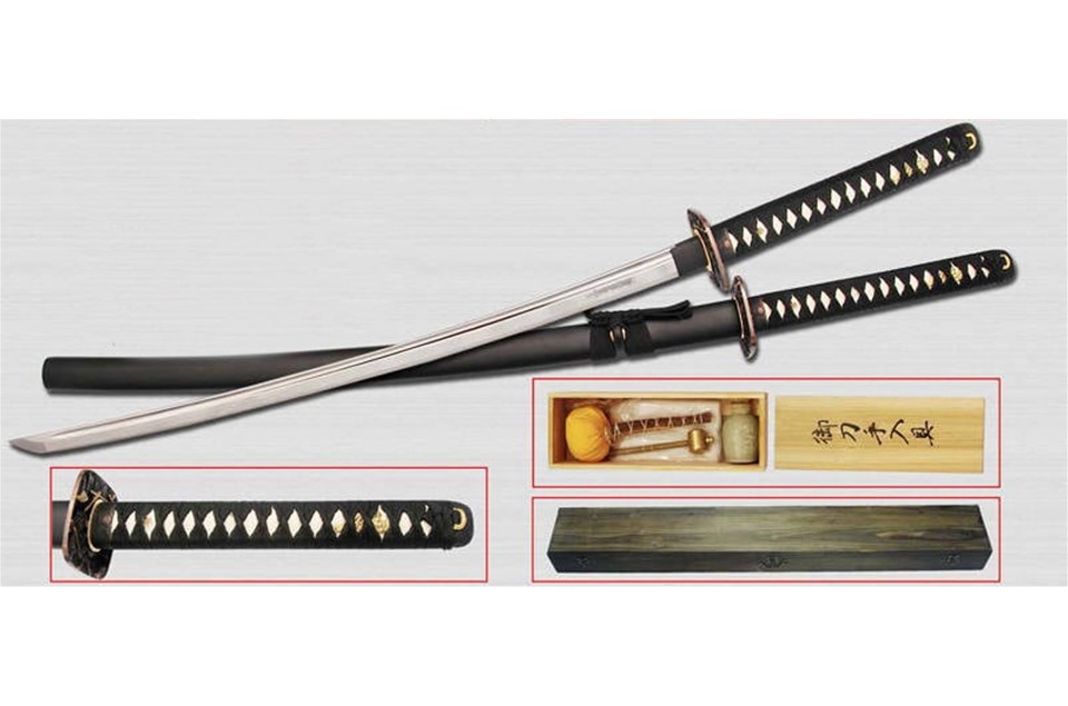 Unveil the extraordinary with our Authentic Handmade Katana Sword Set ? a fusion of unrivaled craftsmanship and timeless artistry. Crafted by master swordsmiths using centuries-old techniques, each Katana boasts a razor-sharp blade forged from high carbon steel, adorned with a genuine Hamon line for authenticity. With its intricately designed tsuba, comfortable rayskin-wrapped hilt, and the included premium sword cleaning kit, this Katana transcends functionality to become a work of art. Store and showcase your Katana in the handcrafted wood display/storage box, a piece of elegance in itself. Whether you're a collector, martial arts enthusiast, or connoisseur of fine weapons, this Katana makes an unforgettable gift or addition to your collection. Embrace the legacy of the Samurai ? order your Authentic Handmade Katana Sword Set today and experience a piece of history, craftsmanship, and honor like no other.