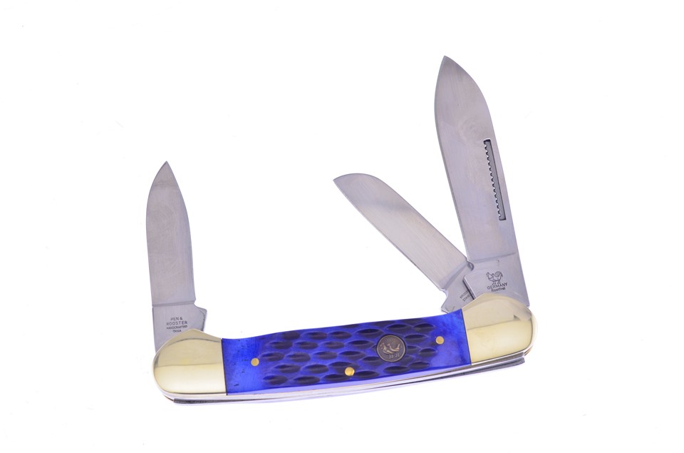 Hen & Rooster Int'l has really knocked it out of the park with this 4 1/2" Blue Picked Bone 3-Blade! You need to pop this in your cart now while supplies last!