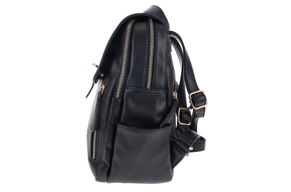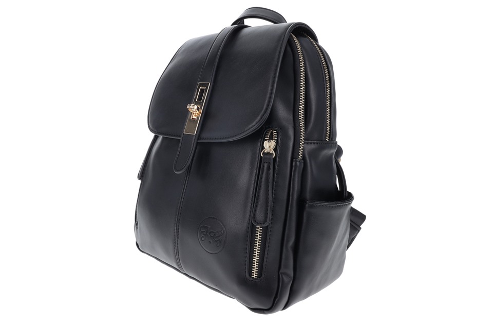 FEATURES-Enough room for books, tablets & any other items you may need or want to carry-In addition to the main pocket, there are two side pockets for easy access to items such as your phone or keys-The concealed carry pocket is located on the back, is accessible from either the left or right side, & is large enough to hold a full-sized gun-Made of vegan leather & has two shoulder straps-Straps that can be stowed so it can be carried as a backpack or one-shoulder bag-Black