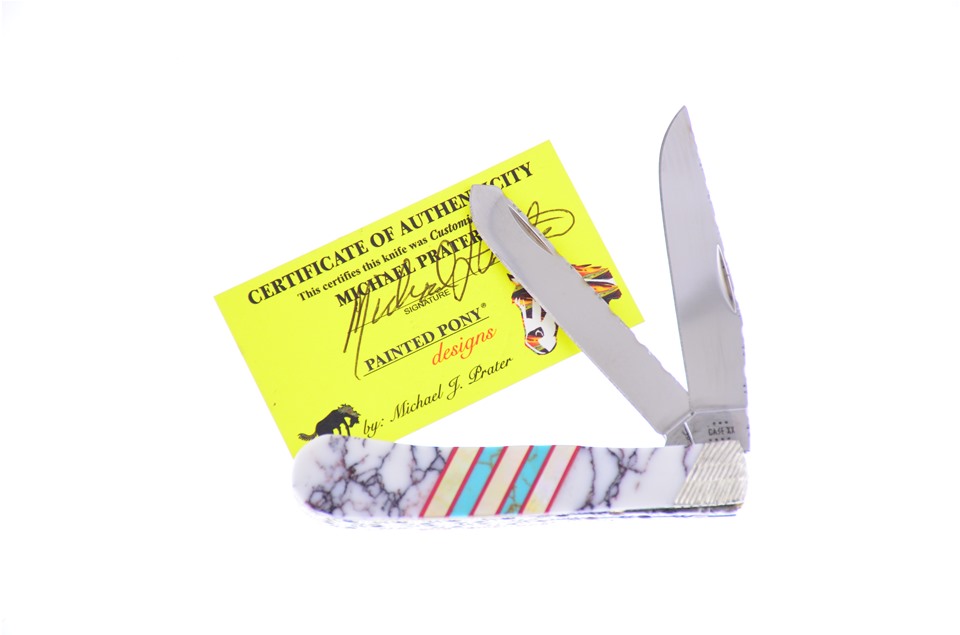 We think you're going to like this 4 1/8" Wild Horse Jasper Stone Trapper With Pearl and Turquoise Inlays! No one can resist, so get yours while you can!