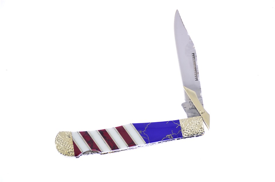 This 5" Hen and Rooster Swing Guard With Blue and Gold Matrix, Red Sugi and White Stone is another great piece from Hen & Rooster. This is going to be flying off the shelves, so don't miss your chance to get one!