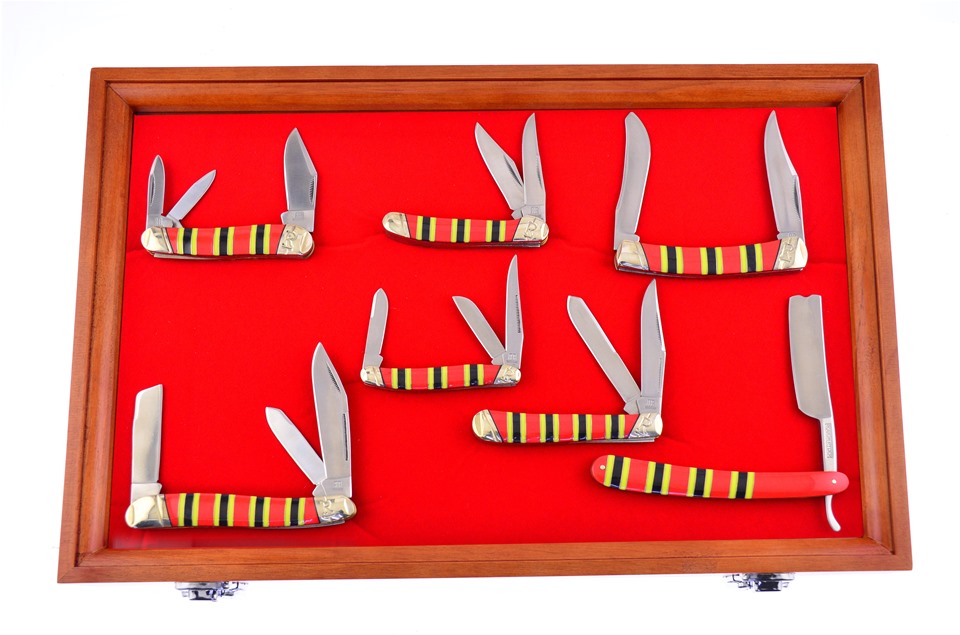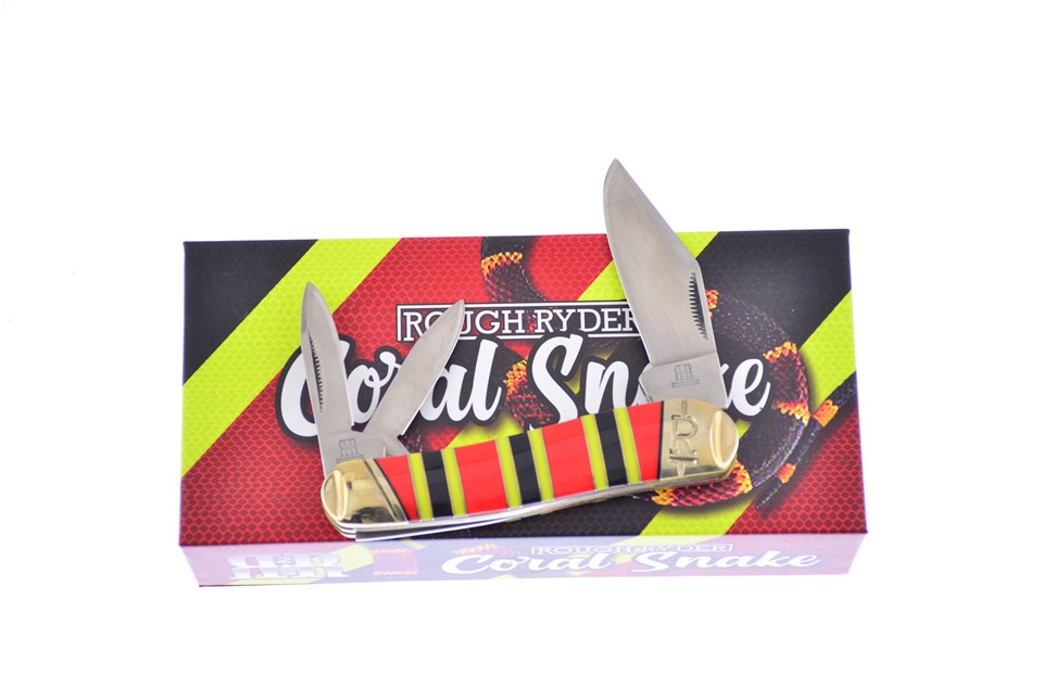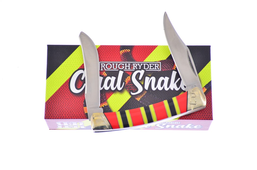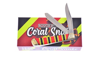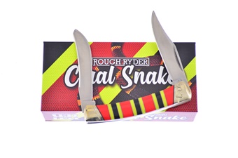 Discover the ultimate collector's dream with The Rough Rider 7-Piece Coral Snake Pocketknife Collection, exclusively available at Cutlery Corner. This stunning set features seven intricately crafted pocketknives, each adorned with the mesmerizing Coral Snake design?a symbol of beauty and danger. Whether you're an avid collector or a knife enthusiast, these knives are sure to impress with their precision craftsmanship and eye-catching aesthetics. Plus, for a limited time, receive a FREE locking hardwood display case to showcase your collection in style. Don't miss your chance to own this exclusive set?order now and elevate your knife collection to new heights with The Rough Rider Coral Snake Pocketknife Collection.