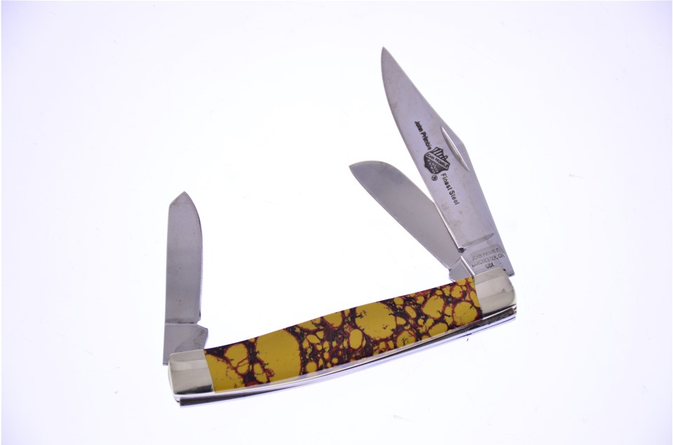 This 3 3/8" Yellow Dino Stone Stockman by John Primble is a great choice for any collector. Stock is limited, so add to your cart before they are all gone.