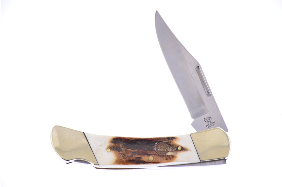 This 4" Stag Lockback is another great piece from Hen & Rooster Int'l. This item is going to sell like hotcakes, so get yours now.