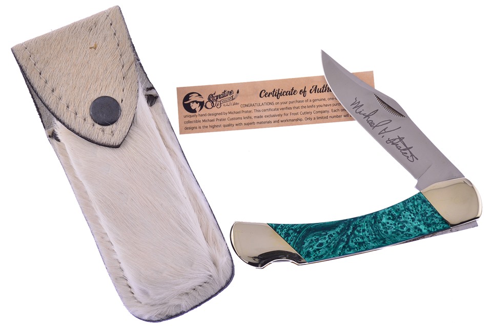 This set is a great addition to any collection. You'll receive one of the 5" Green Velvet CorelonĀ® Lockbacks, one of the Leather Sheaths. Not all of these components will stay in stock, so throw this in your shopping cart now!