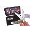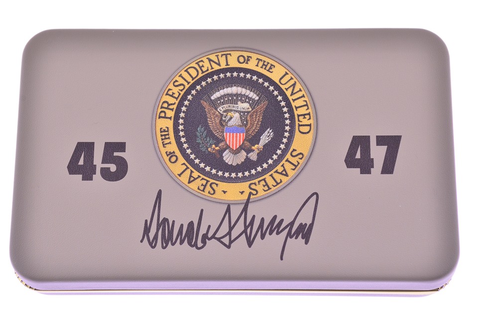 Crafted with a smooth, premium Frostwood white handle, this knife features Donald J. Trump's signature and an intricately engraved image of the president himself. A collector's item, it comes beautifully presented in a leatherette display case, complete with an embossed outer cover and a detailed inner case image, making this piece a true tribute to American resilience and leadership.