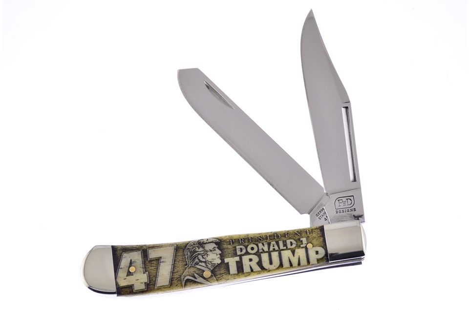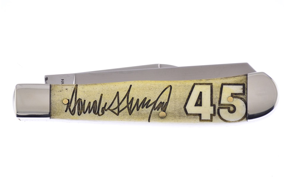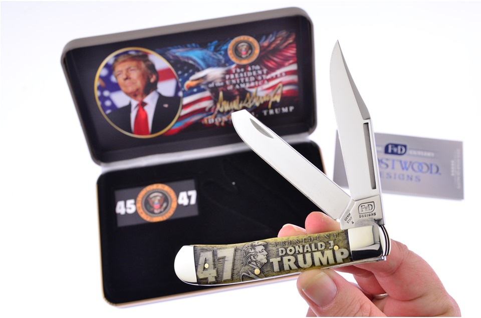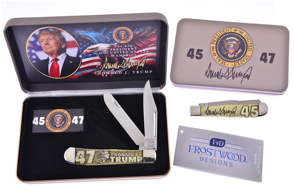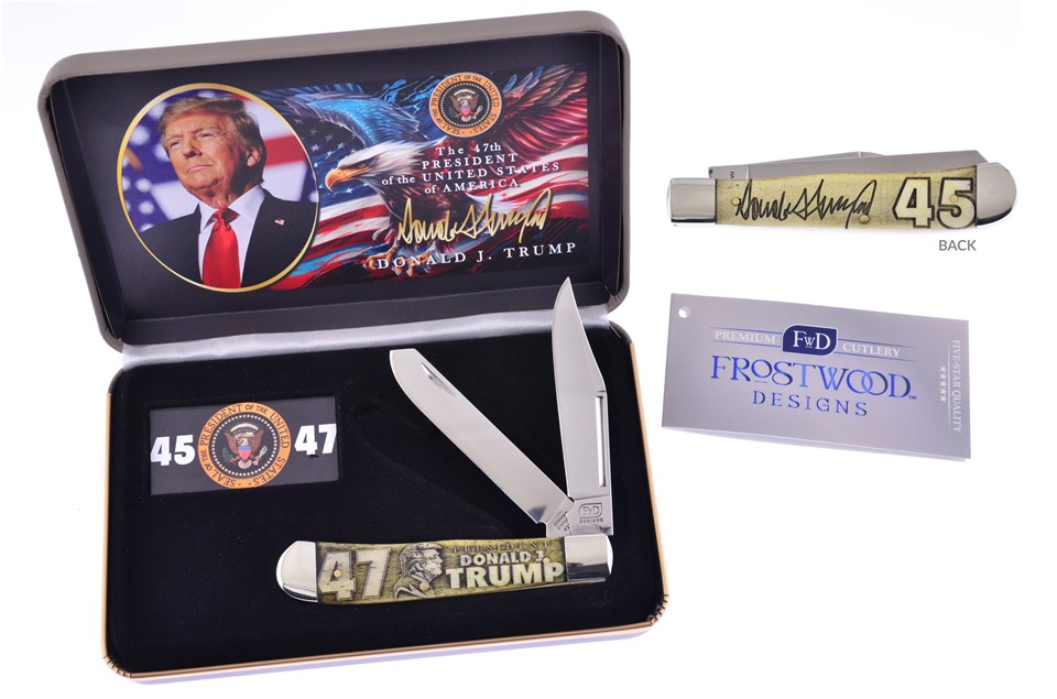 Secure this unique commemorative item for your collection or gift it to the patriot in your life. Celebrate history with the 47 & 45 Trapper Knife?where quality craftsmanship meets American pride!