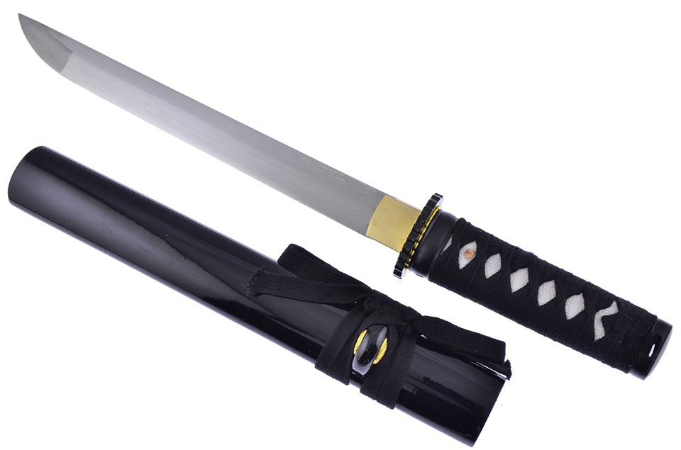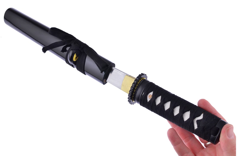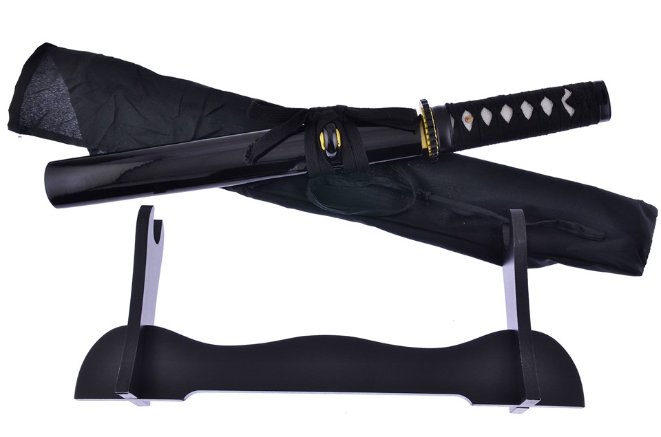 16.5" Tanto short sword with fabric-wrapped handle. Comes with a display stand.