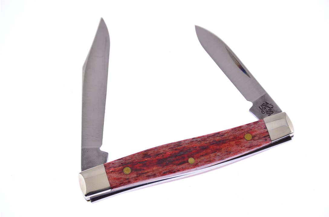 This Case XX 2013 pen knife brings together the perfect amount of functionality and artistry. Coming in at a little over 2 inches, this pen knife fits easily into a pocket making it easy to carry each day. The red smooth bone handle pairs nicely with the nickel silver bolsters to not only add to the visual appeal, but also the durability of the knife. Each side features a stainless steel blade that is rust-resistant and easy to maintain, making this perfect to carry everyday or to display with your collection. Do not miss your chance to get our only one now!