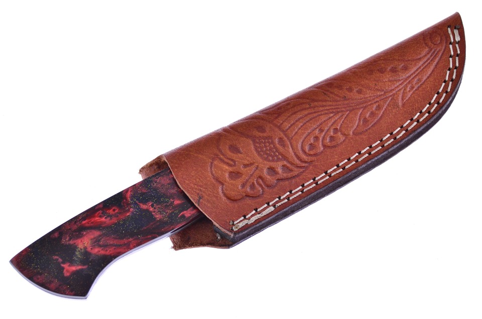 This Couksa Damascus, with a handle by Michael Prater, would make a great addition to anyone's collection. It blends together the perfect amount of craftsmanship and durability, allowing you to decide if you would like to use it or display it. The Damascus steel blade paired with the decorative handle makes this a desirable tool for both its function and aesthetics. The full tang design also provides addition strength and balance allowing confidence in each cut. This is perfect for those who appreciate quality and character, but also need a durable tool for their collection.