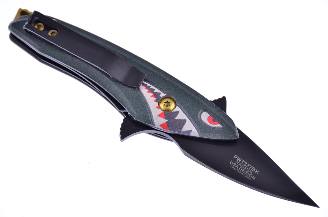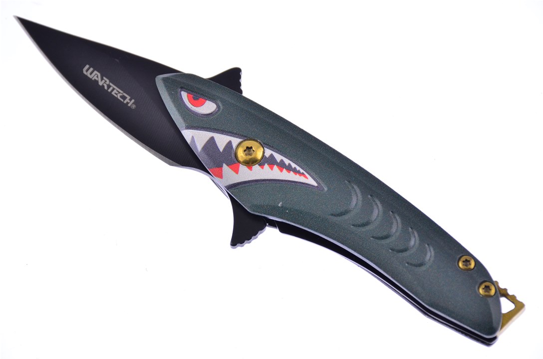 The Black Shark Assist Knife is both eye catching and functional, making it a must have addition to your collection. The stainless steel blades allow both practicality and durability to its users, making it great for everyday carry. This knife also features a belt clip, allowing the carrier a secure and convenient location to store their tool. However, if you would prefer to keep it on a lanyard, you have that option as well. The handle is also a plus because it brings a little bit of style into a small part of your everyday life. Get it now before it is gone!