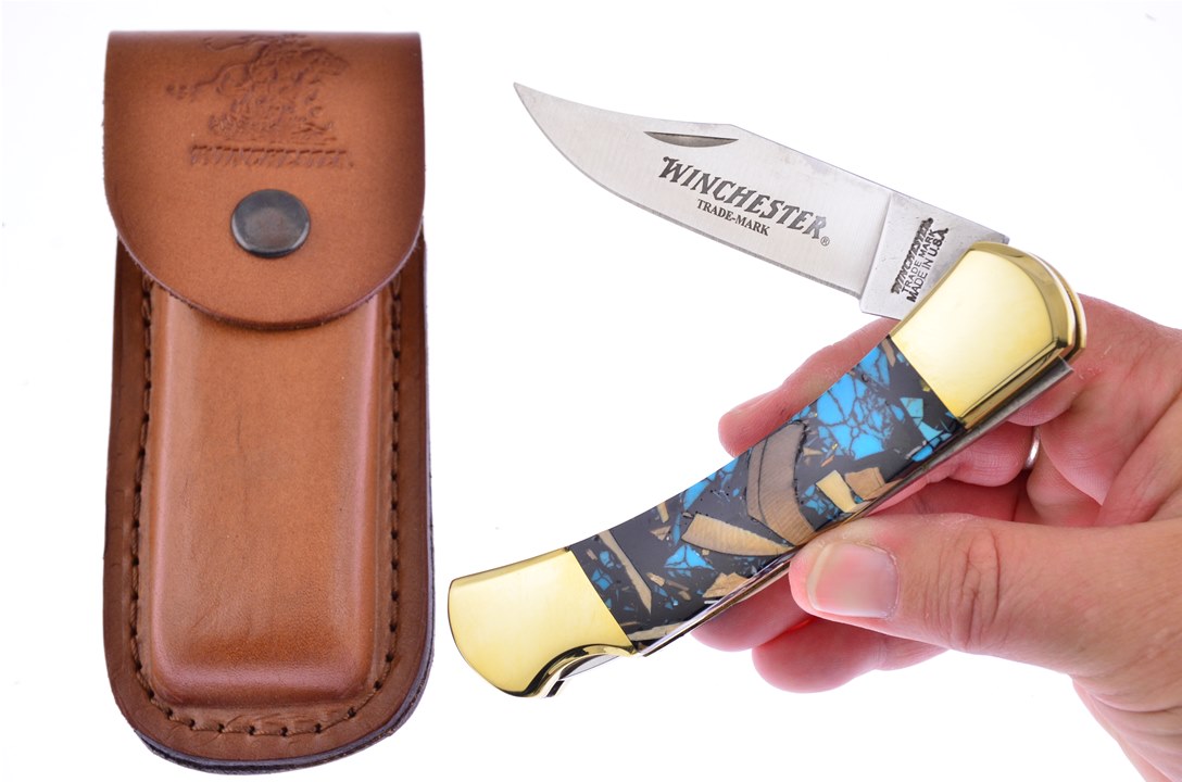 This Winchester 5" Turquoise Lockback is a customer favorite! This is going to be flying off the shelves, so don't miss your chance to get one!