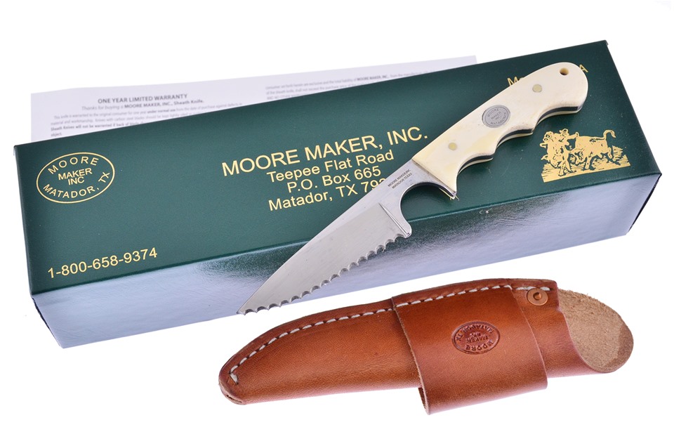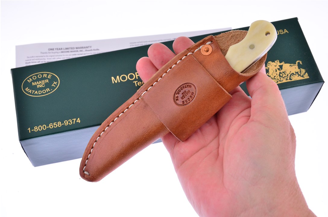 The 7" Bone Fixed Blade by Moore is a long-time best-seller! Stock is limited, so add to your cart before they are all gone.
