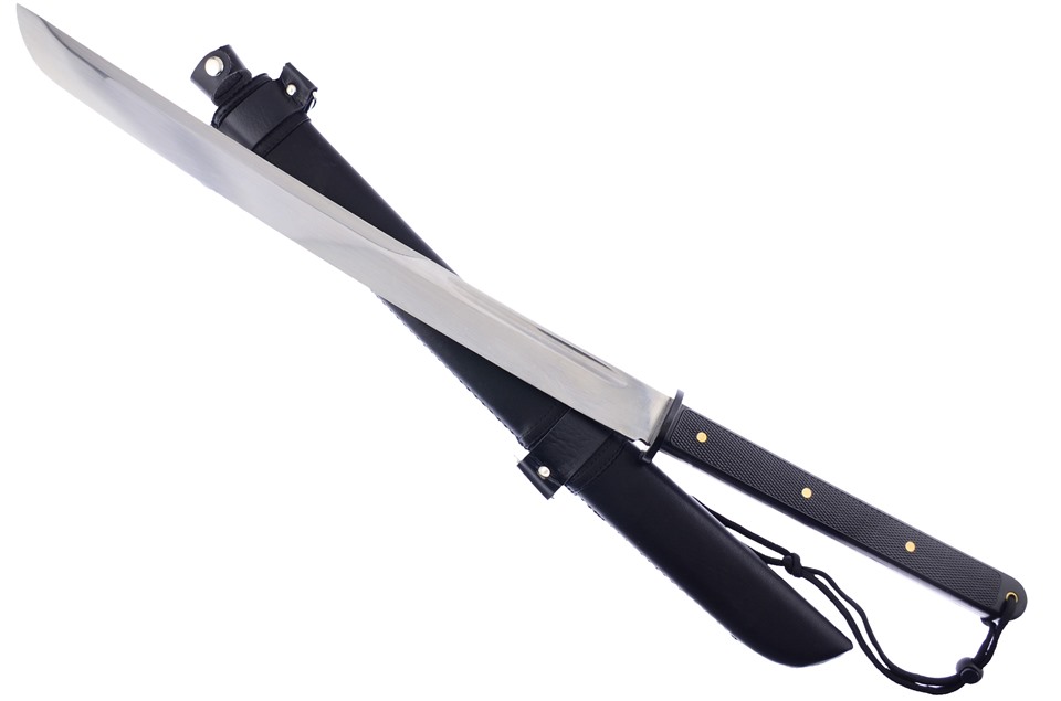 This version sports a tough, monotempered high quality 1060 carbon steel blade with smooth, clean lines and a partial bo-hi near the hilt, which is made from hard wearing ABS and triple pegged for the kind of durability the Samurai could only have ever dreamed of. Complimented with a modern wearable leather scabbard to make it the complete package.