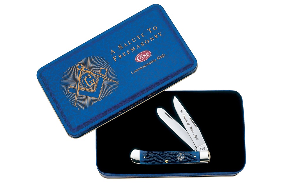 We think you're going to like this 4 1/4" Blue Jigbone Trapper! It has an Etched Stainless Steel Blade, Nickel Silver Bolsters and a Masonic Shield, you need to pop this in your cart now while supplies last!