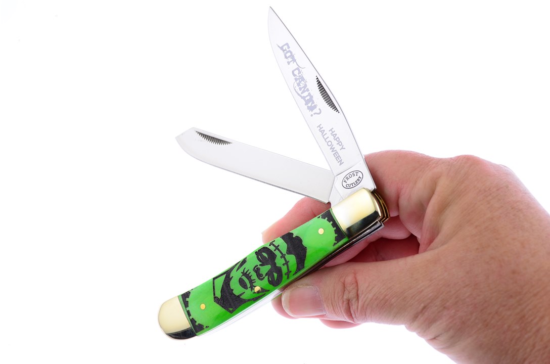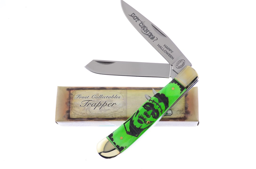 This 4 1/4" Green Smooth Bone Trapper is another great piece from Frost Cutlery. This item is going to sell like hotcakes, so get yours now.