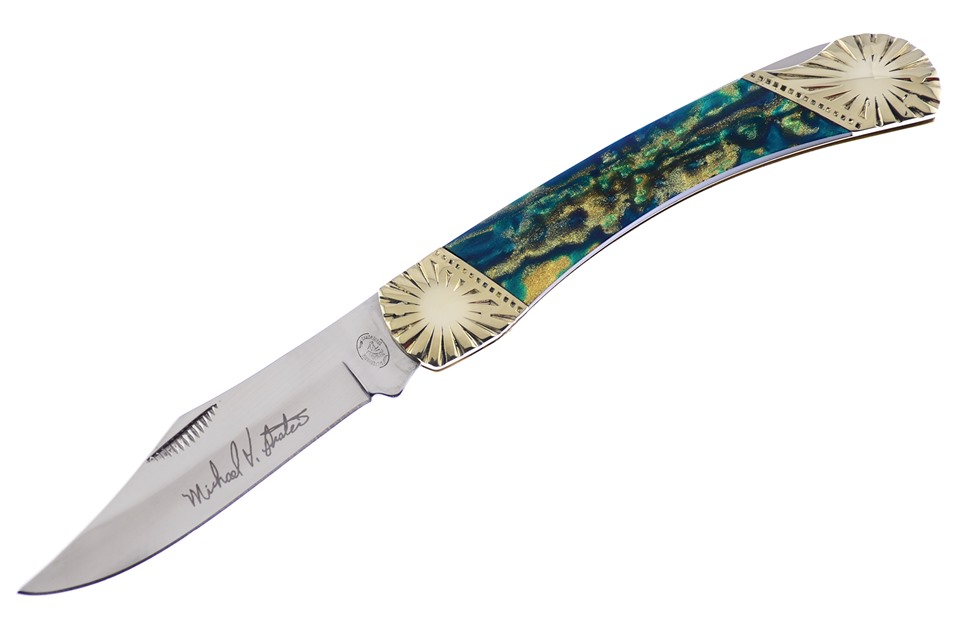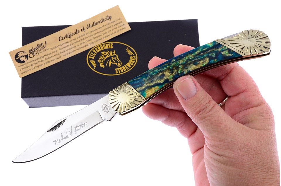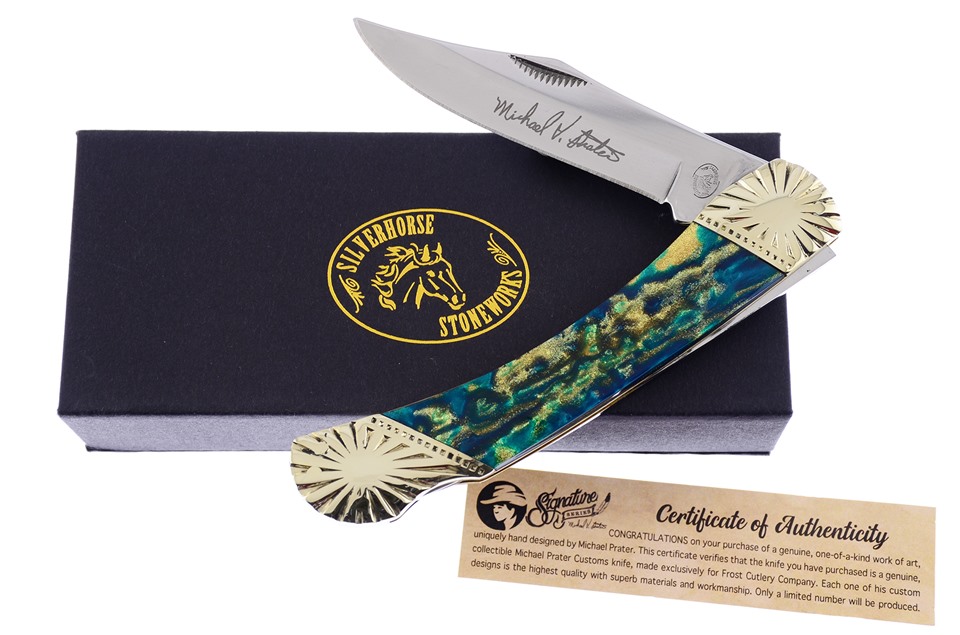 This 5" CorelonĀ® Lockback by Silverhorse Stoneworks is a great choice for any collector. This item is going to sell like hotcakes, so get yours now.