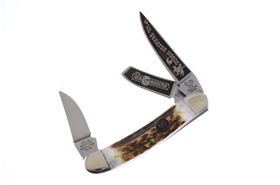 Hen & Rooster Int'l has really knocked it out of the park with this 3 1/2" Stag Sowbelly! Stock is limited, so add to your cart before they are all gone.