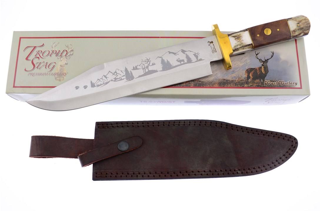 Customers can't get enough of the Trophy Stag 15 1/4" Stag/Wood Combination Bowie! No one can resist, so get yours while you can!