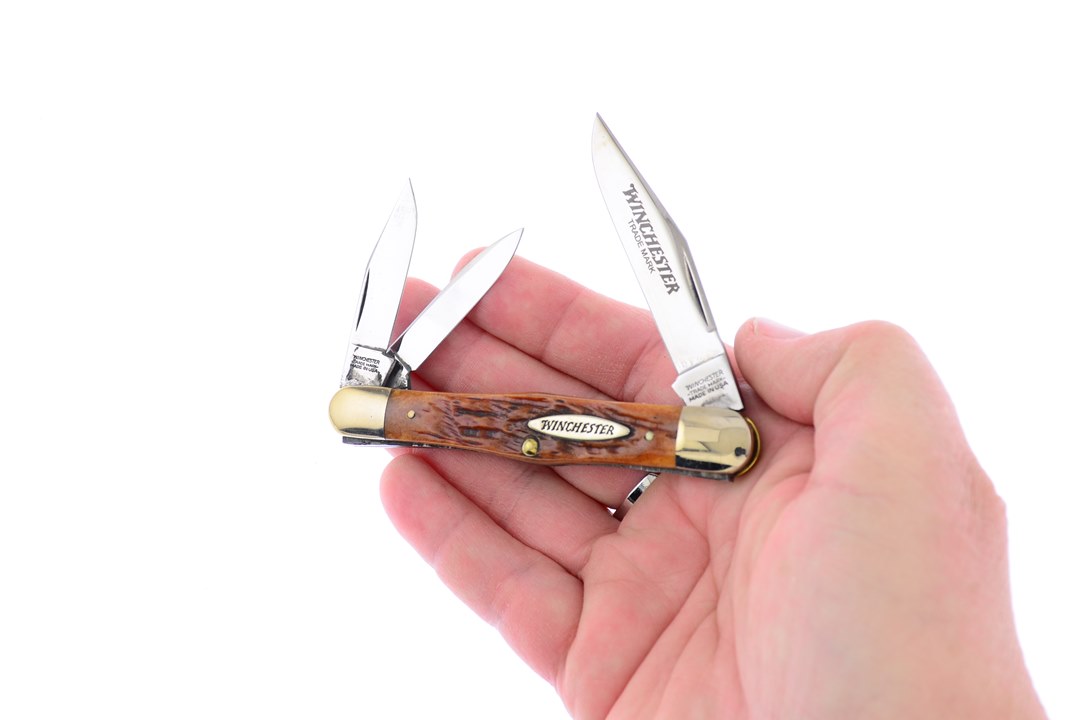 This 3 1/2" Burnt Orange Bone Swellcenter Whittler by Winchester is a great choice for any collector. This is going to be flying off the shelves, so don't miss your chance to get one!