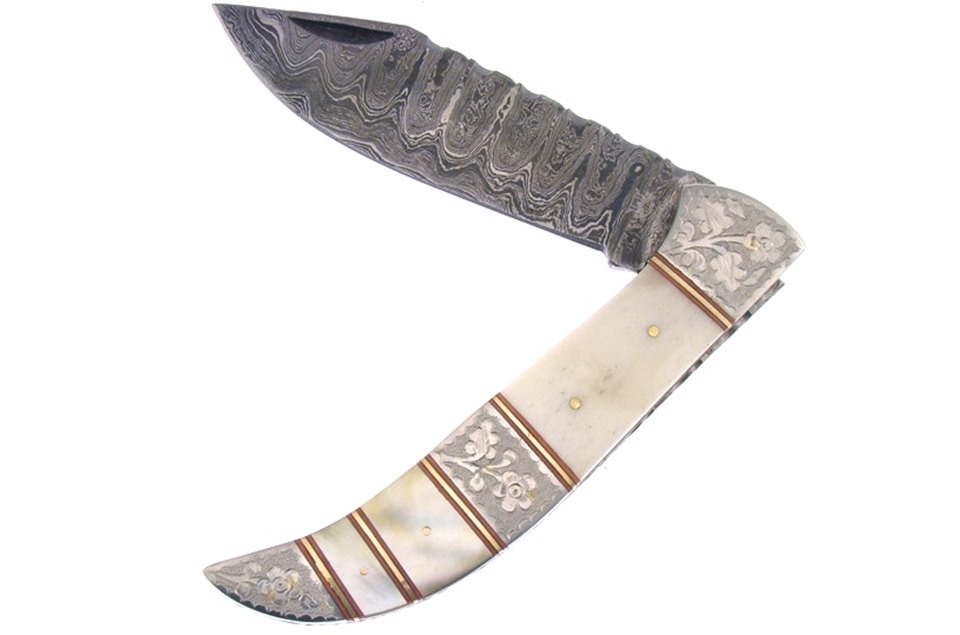 The 5 5/8" Pearl/White Smoothbone Combination Folder by Frost Cutlery is a long-time best-seller! It has Decorative Bolsters and Damascus Blade and this item is going to sell like hotcakes, so get yours now.