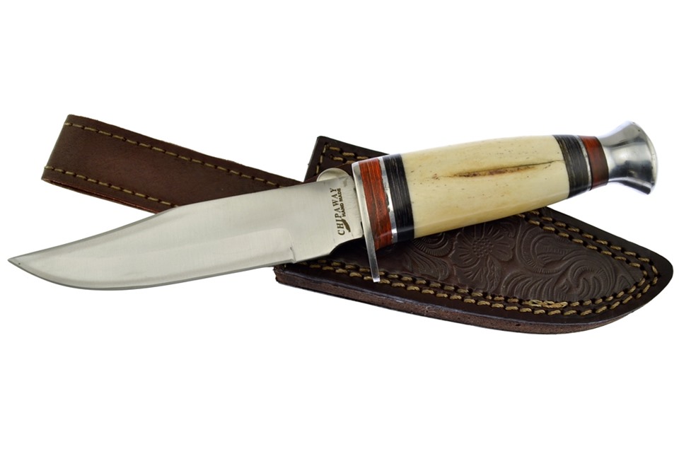 This 9 3/4" White Smoothbone Bowie by Chipaway Cutlery is a great choice for any collector. With details like Stainless Steel Guard, Leather Sheath, and Stainless Steel Blade, this is going to be flying off the shelves, so don't miss your chance to get one!