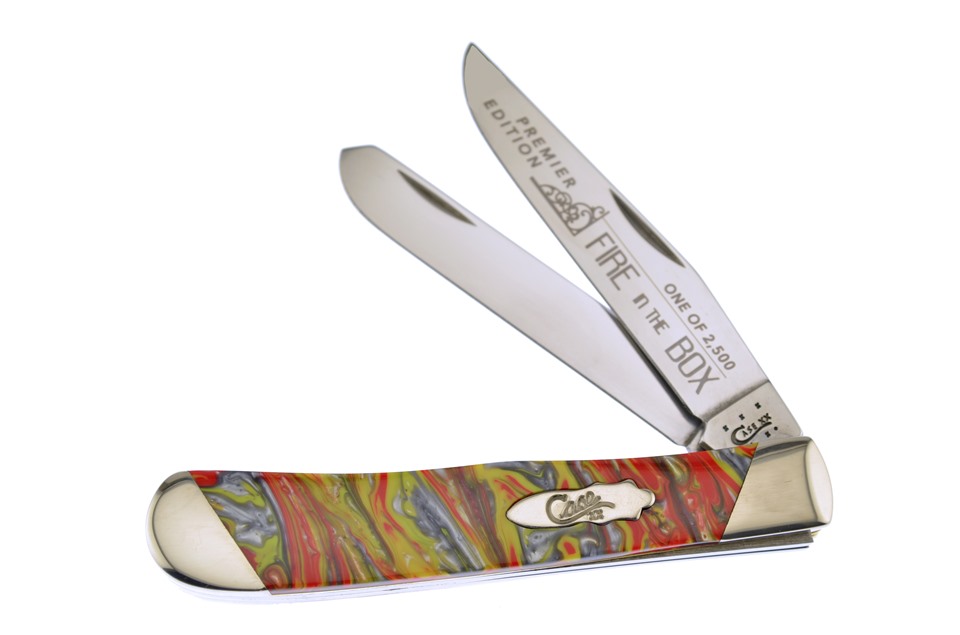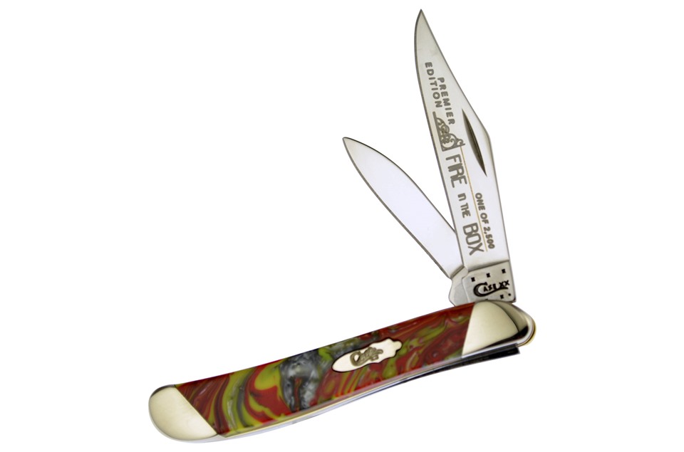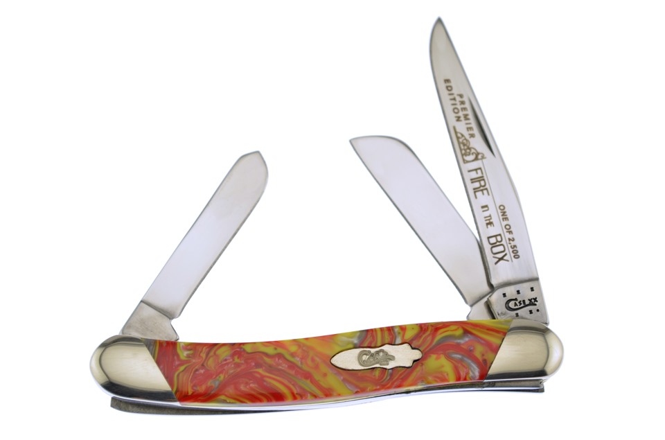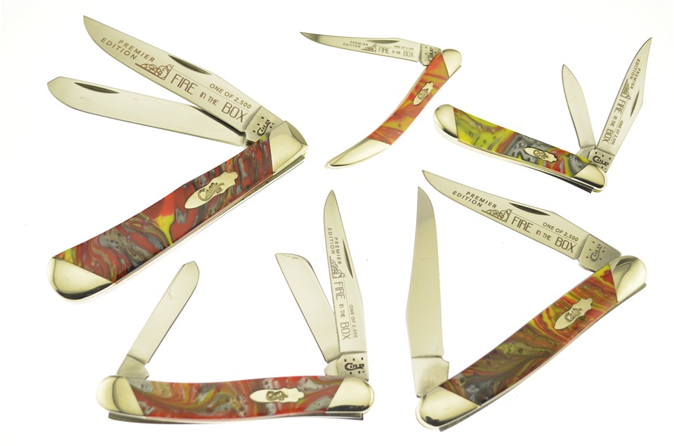 This set by Case is a great addition to your collection! You'll receive one of the 3" Fire In The Box Corelon® Small Toothpicks, one of the 3 7/8" Fire In The Box Corelon® Muskrats, one of the 2 7/8" Fire In The Box Corelon® Peanuts with Nickel Silver Bolsters, one of the 4 1/8" Fire In The Box Corelon® Trappers with Etched Blade, one of the 3 5/8" Fire In The Box Corelon® Medium Stockmans with Custom Shield. Not all of these components will stay in stock, so throw this in your shopping cart now!