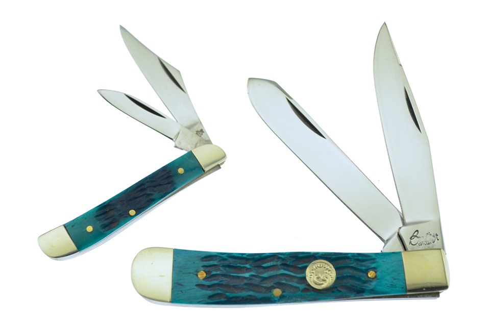 Here is a set of BareFoot knives you don't want to miss! You'll receive one of the 2 3/4" Green Jigged Bone Little Peanuts, one of the 4 1/8" Green Jigged Bone Trappers. Sets like these go fast, so get yours while you can!