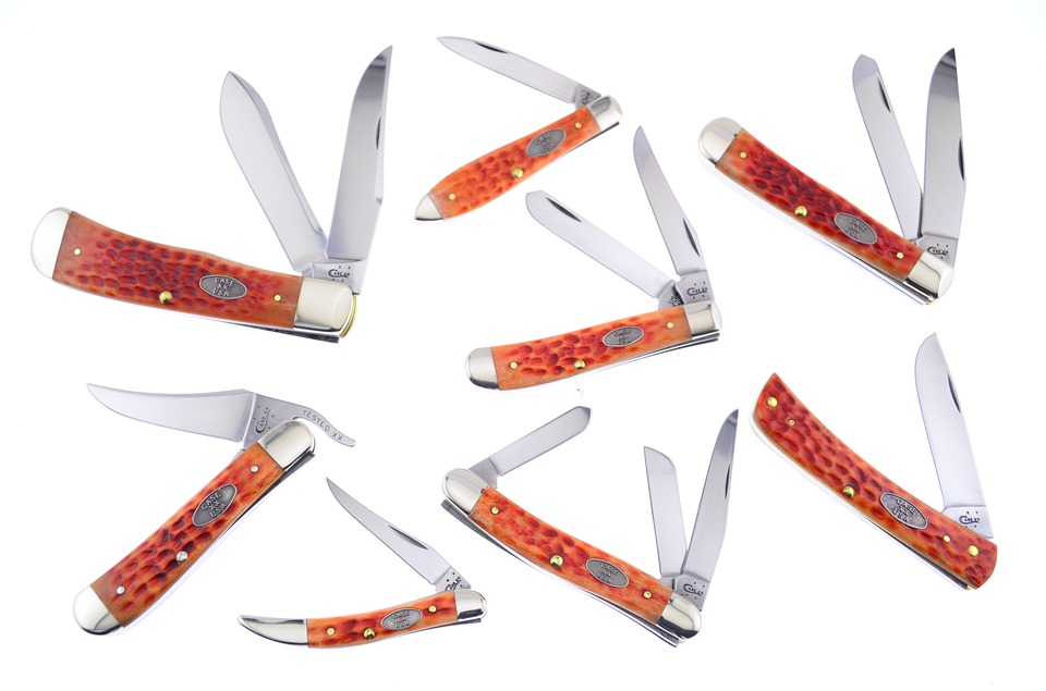 This set by Case is a great addition to your collection! Included in this set is one of the 4 1/8" Whiskey Bone Trappers, one of the 3" Whiskey Bone Small Toothpicks with Brass Pins, one of the 4 1/4" Whiskey Bone Russlocks, featuring Nickel Silver Bolsters, one of the 3 5/8" Whiskey Bone Sod Buster Jrs with Custom Shield, one of the Whiskey Bone Teardrops, one of the 3 5/8" Whiskey Bone Stockmans, featuring Stainless Steel Blade, and so much more! Sets like these go fast, so get yours while you can!