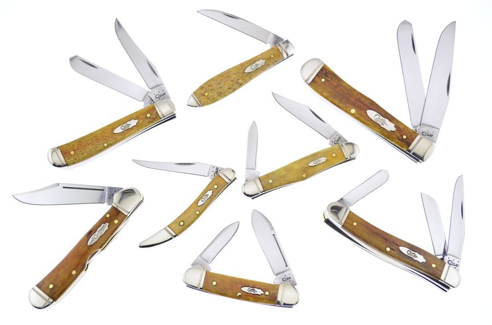 Here is a set of Case knives you don't want to miss! You'll receive one of the 4 1/8" Antique Bone Trappers, one of the 3 1/2" Antique Bone Teardrops with Wharncliffe Blade, one of the Antique Bone Baby Butterbeans, featuring [FEATURE], one of the 4 1/8" Antique Bone Medium Stockmans, one of the 3 5/8" Antique Bone Copperlocks with Stainless Steel Blade, one of the 3" Antique Bone Toothpicks, featuring Stainless Steel Blade, and so much more! Sets like these go fast, so get yours while you can!